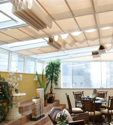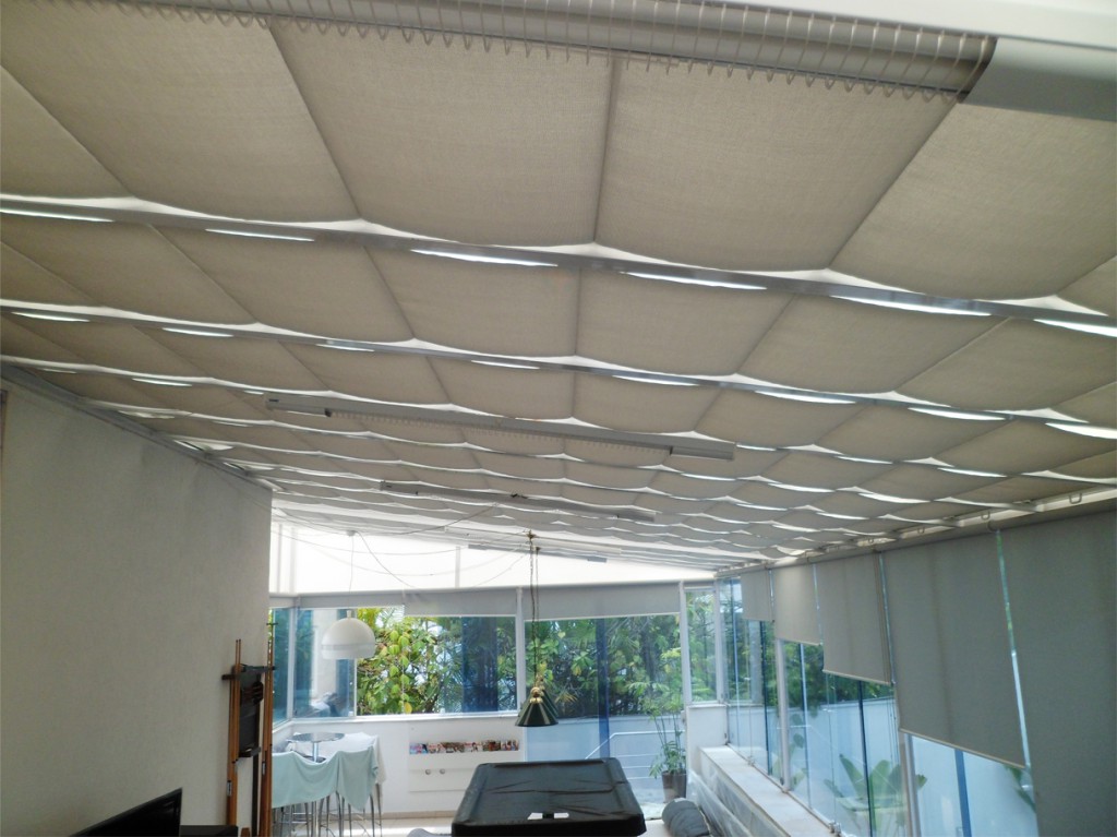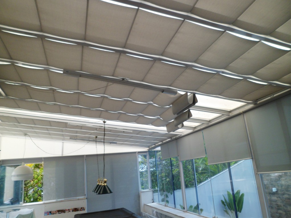 As Cortinas de Teto são indicadas para qualquer projeto que possua janelas ou vidros paralelos ao chão, que necessite de um melhor controle sobre a luminosidade do ambiente, como Jardins de Inverno, halls, coberturas, sacadas.
