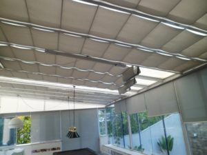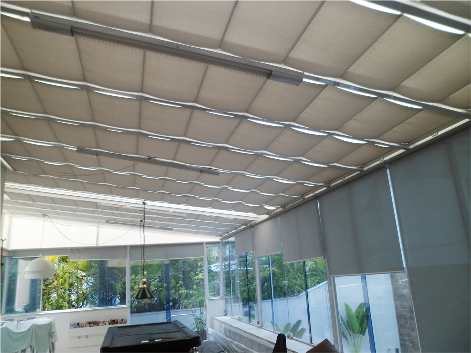 As Cortinas de Teto são indicadas para proteger ambientes com coberturas de vidro e proporcionar um excelente conforto térmico trazendo uma solução ideal para um maior aproveitamento das áreas externas. Contando com um mecanismo de alta tecnologia, a cortina de teto pode ser acionada mesmo quando estiver inclinada, evitando o ofuscamento e permitindo a visibilidade no momento desejado. Além de prático, é um modelo que compões o ambiente com sofisticação e elegância.